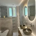 Die Badezimmer in der Villa in Kos-Stadt sind mit einer getrennten Toilette und einer Dusche ausgestattet. Ein Haartrockner, ein Wäschetrockner und Handtücher gehören auch zu den Badezimmern.